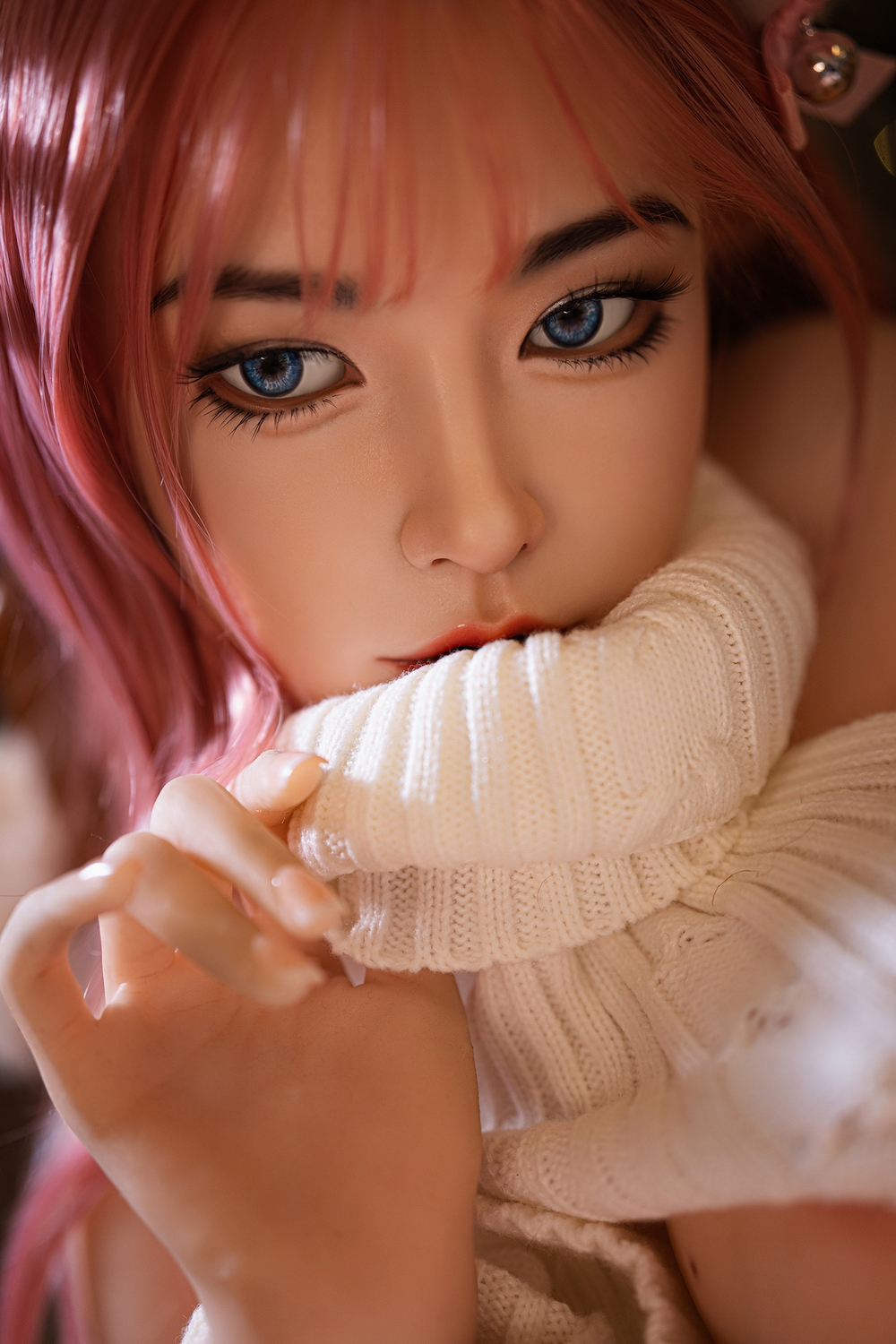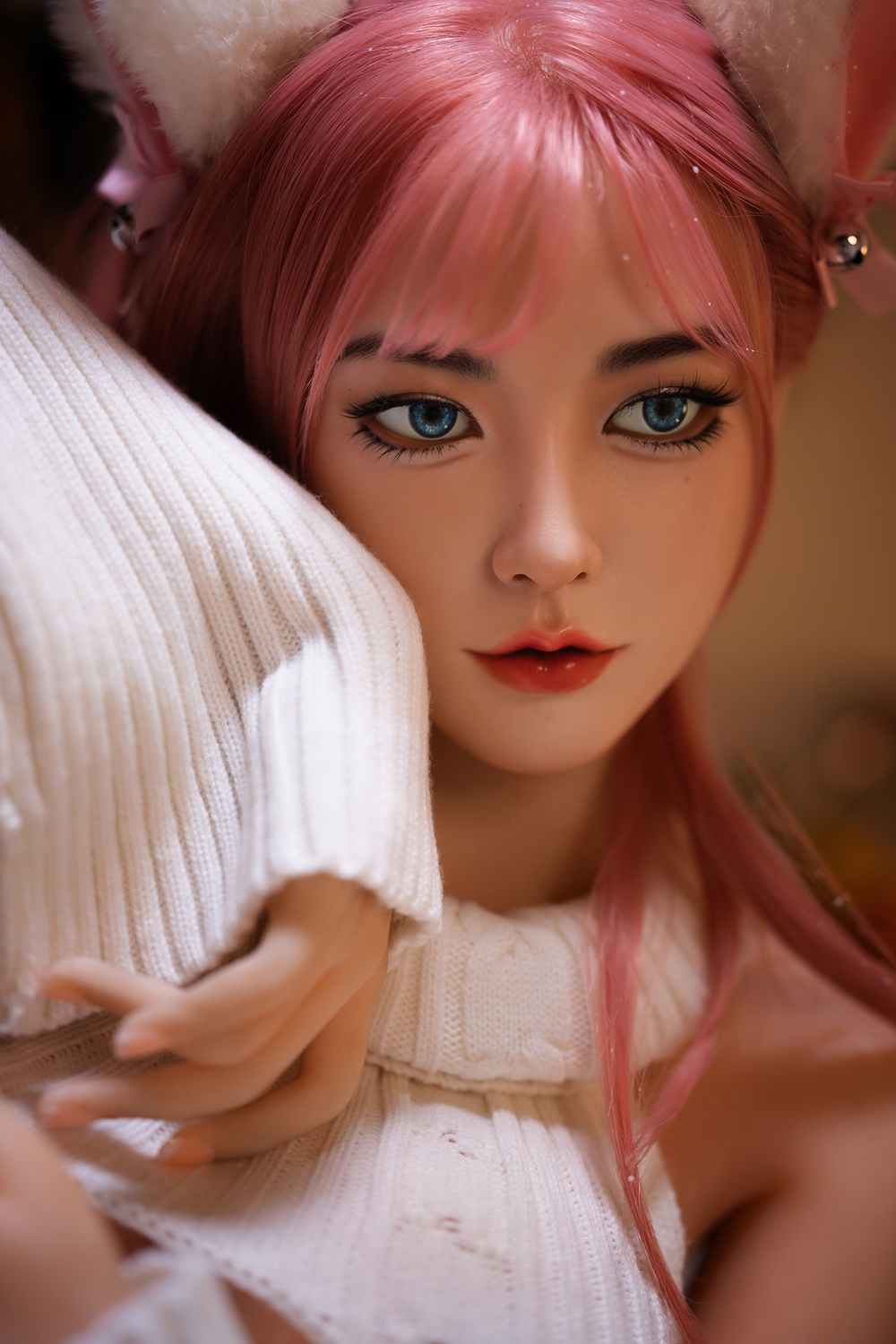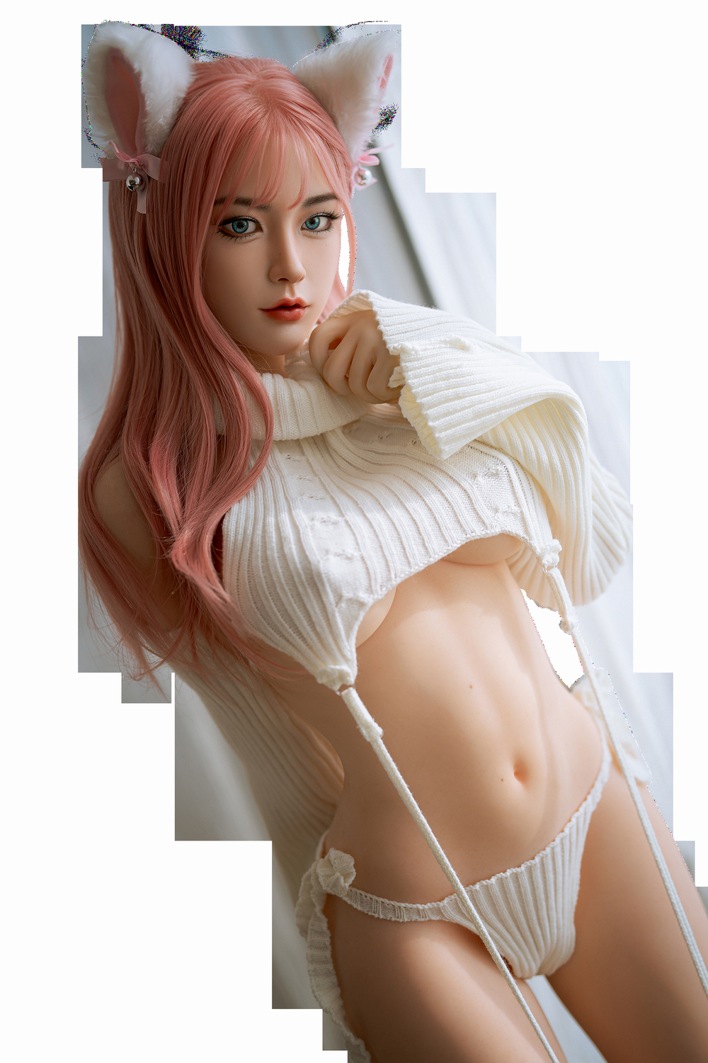 Mimi is a 160cm winter bunny with irresistible charm and cozy seduction. With pink hair, soft ears, and a sweater barely holding her curves, she’s a fantasy brought to life — blending innocence and desire in every glance.